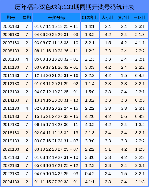 历年第2025133期双色球数据统计表